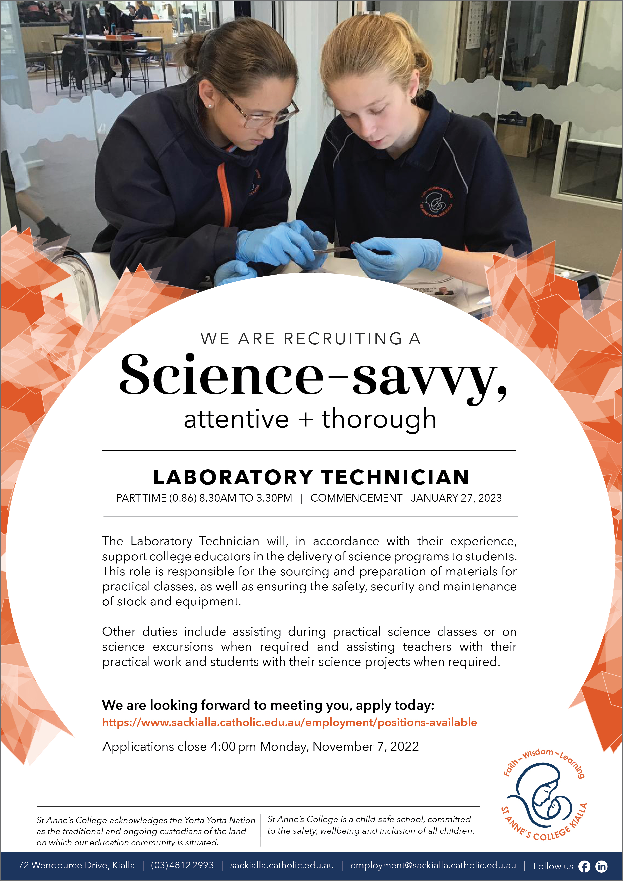 default KIALLA St Anne's College Lab Technician Position October 2022 ( jpg, 2.60 MB )