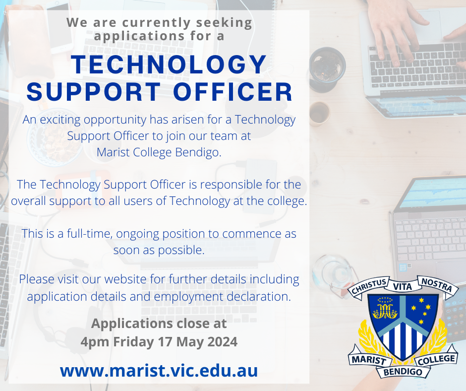 Image BENDIGO Marist College ADVERT Technology Support Officer ( png, 791 KB )