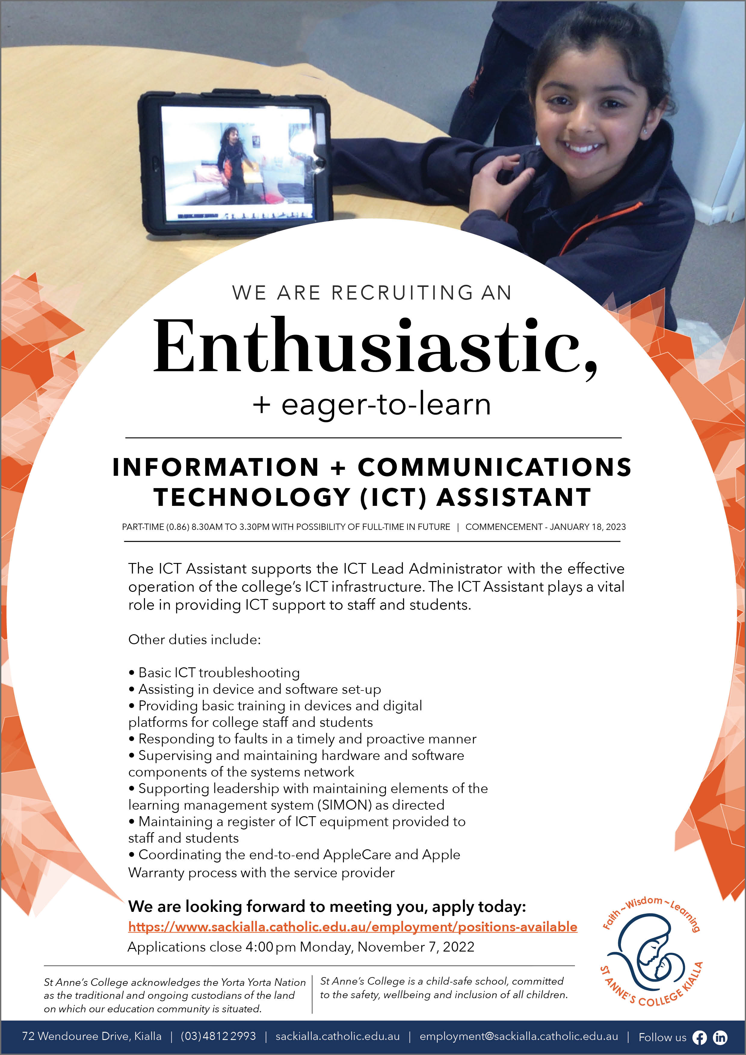 default KIALLA St Anne's College ICT Assistant Position October 2022 ( jpg, 679 KB )