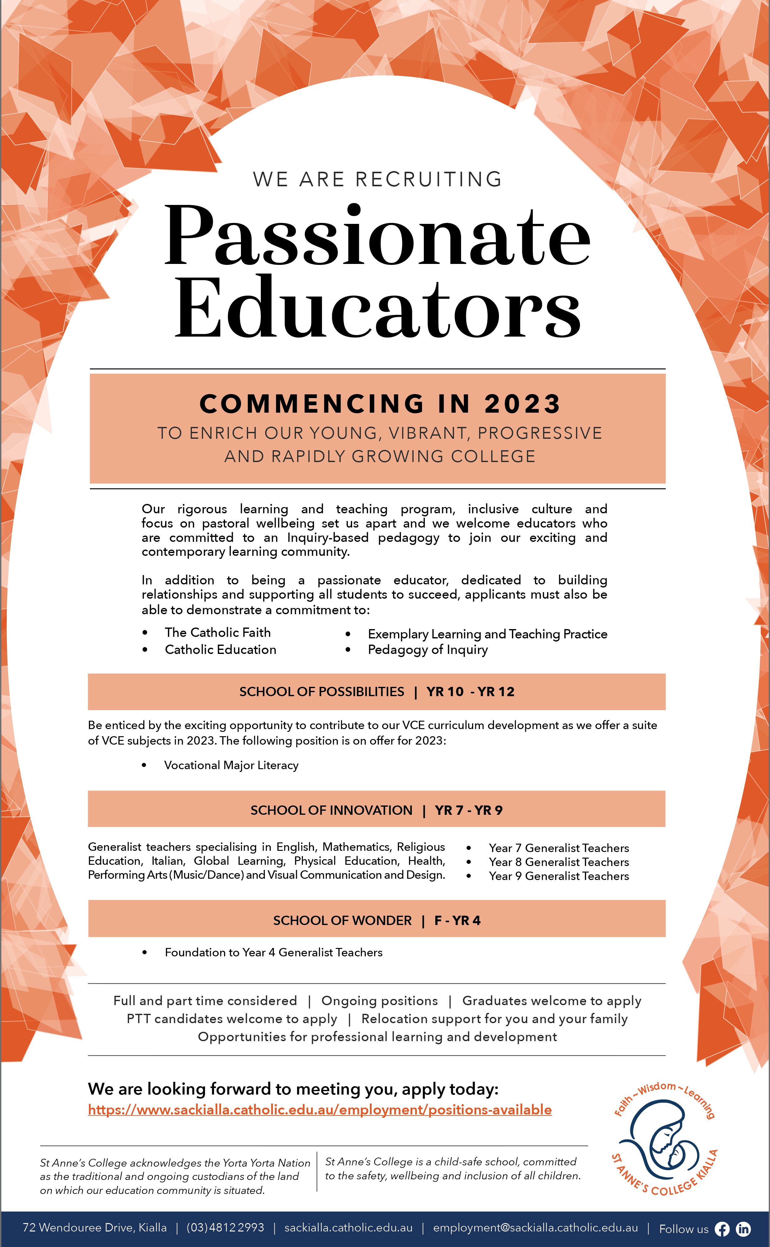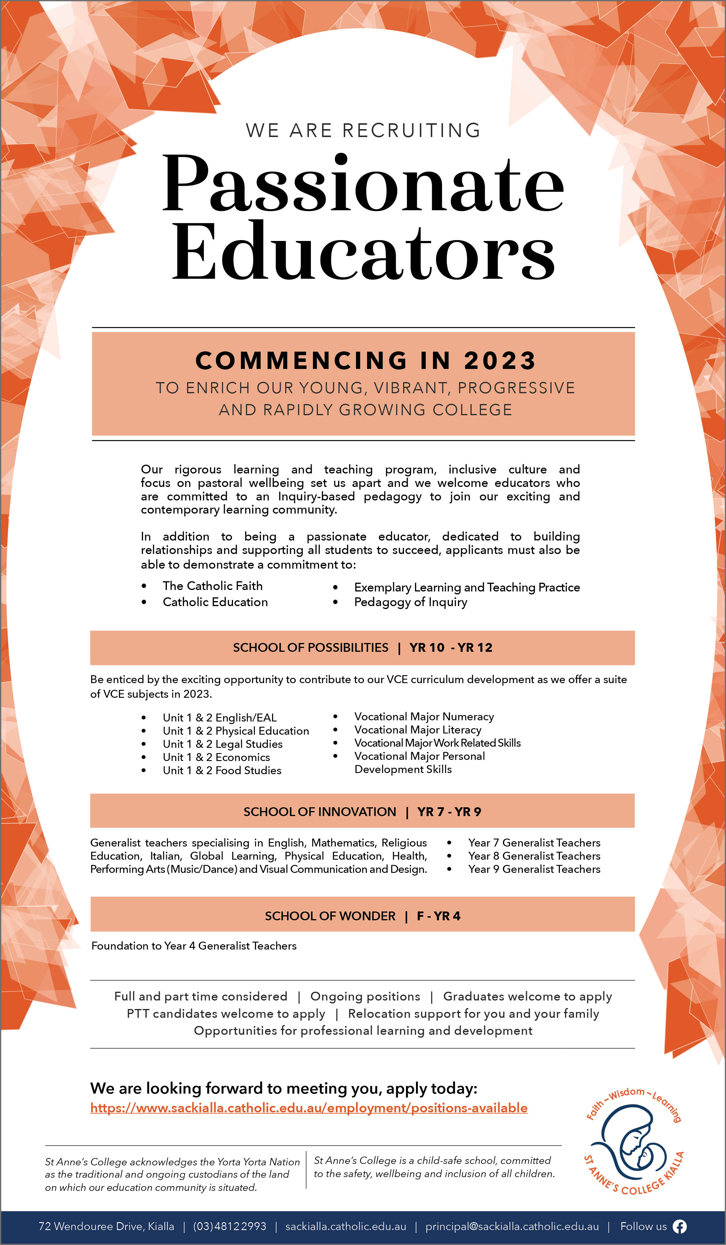 default KIALLA St Anne's College SOW, SOI, SOP Teaching Positions November 2022 ( jpg, 2.71 MB )