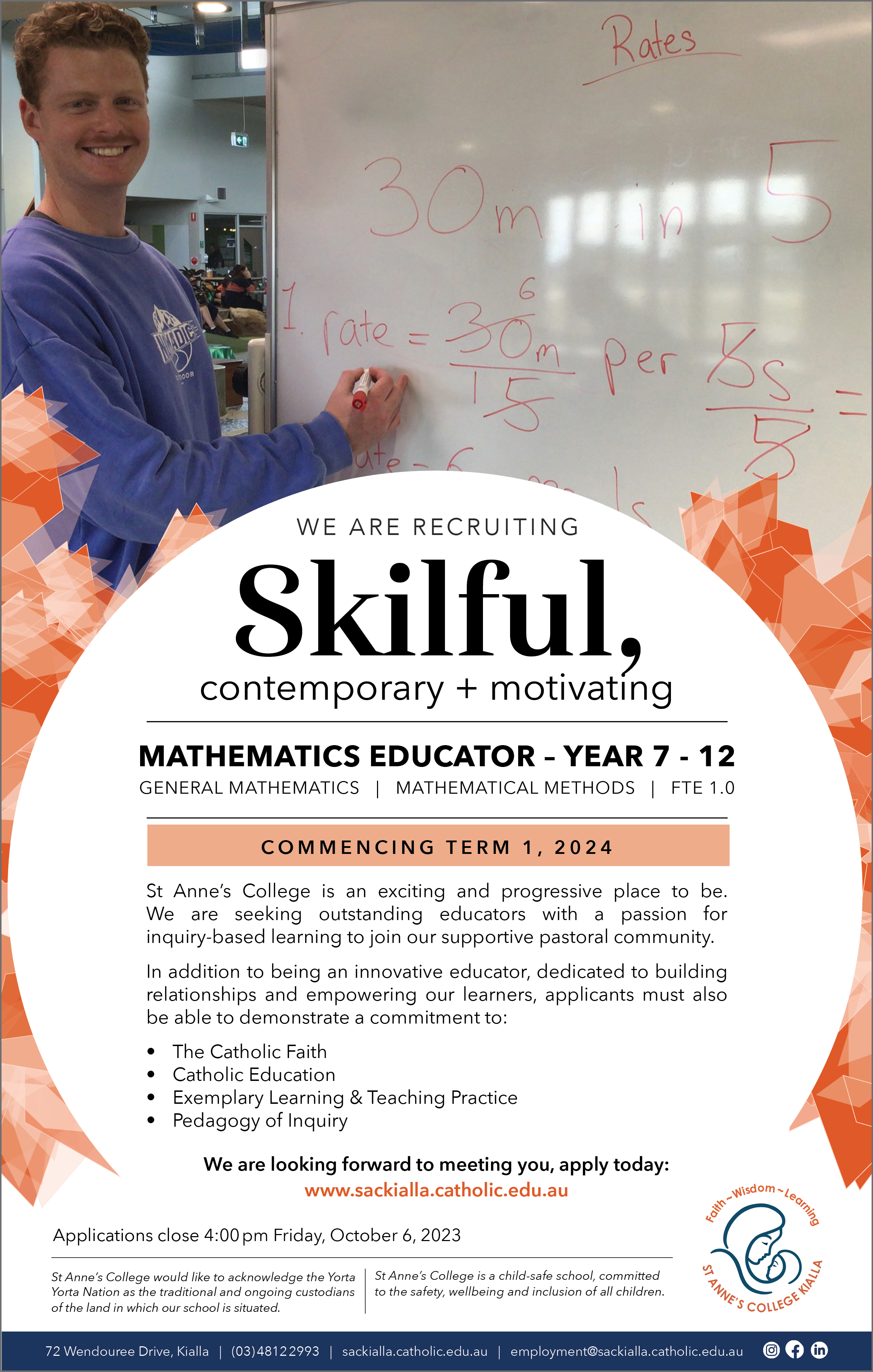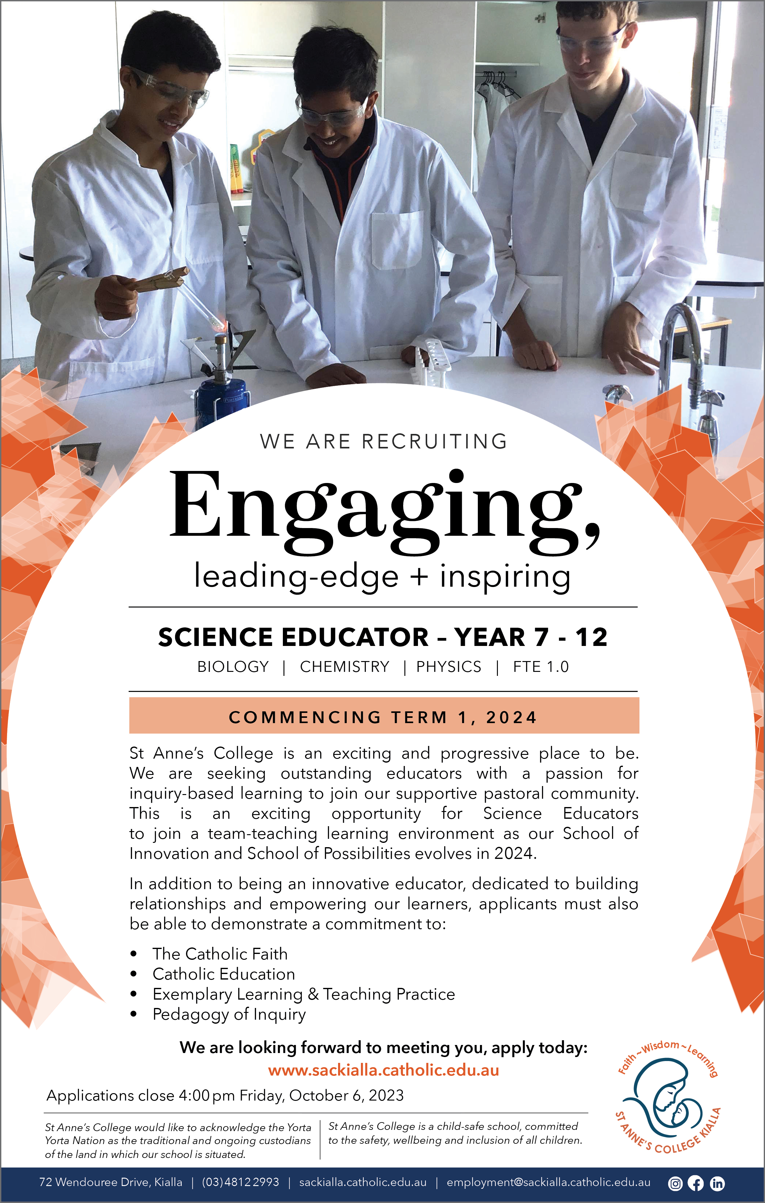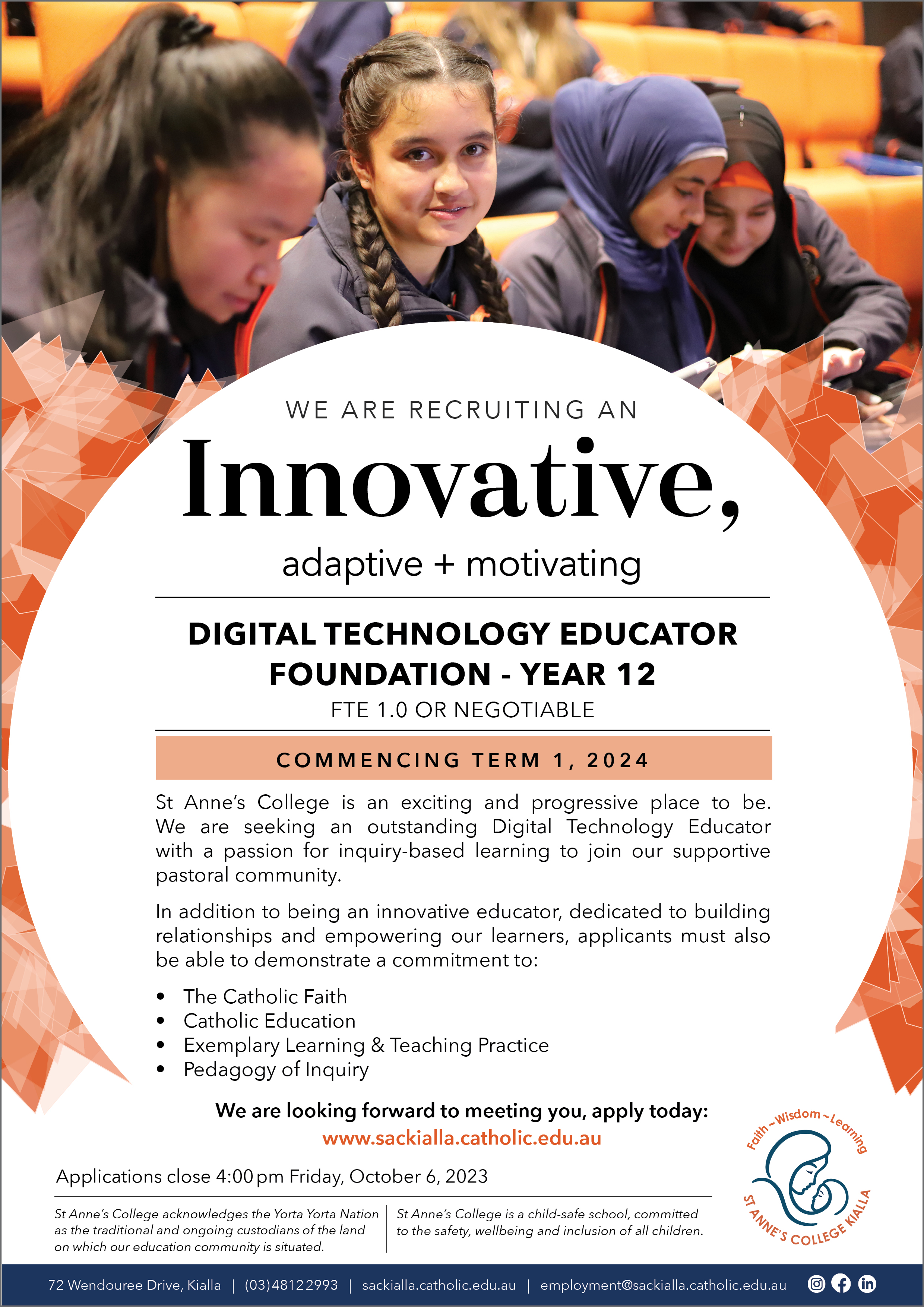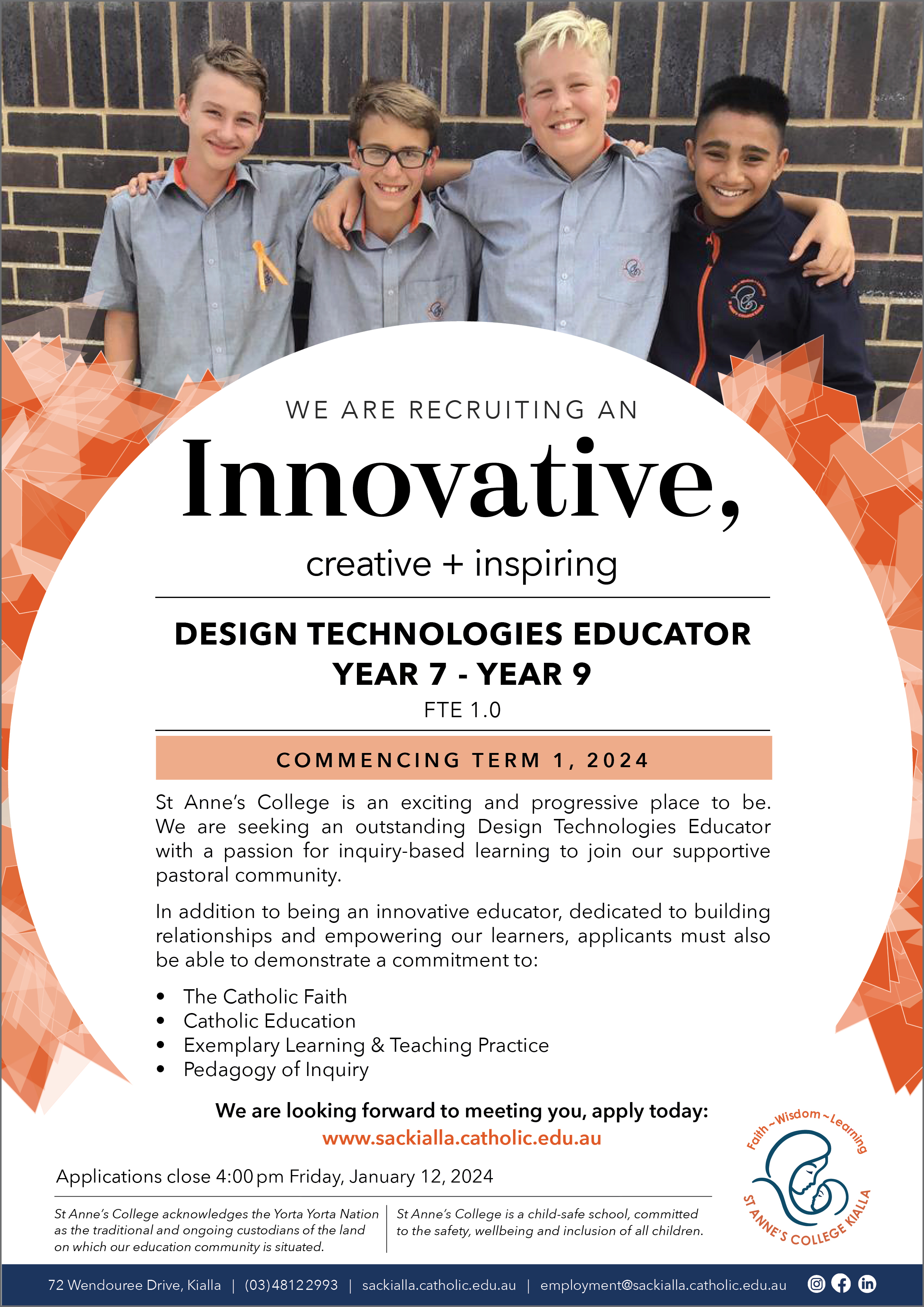 default St Anne's College Design Technologies Teacher Position 2024 Job Advert (website) ( jpg, 2.66 MB )