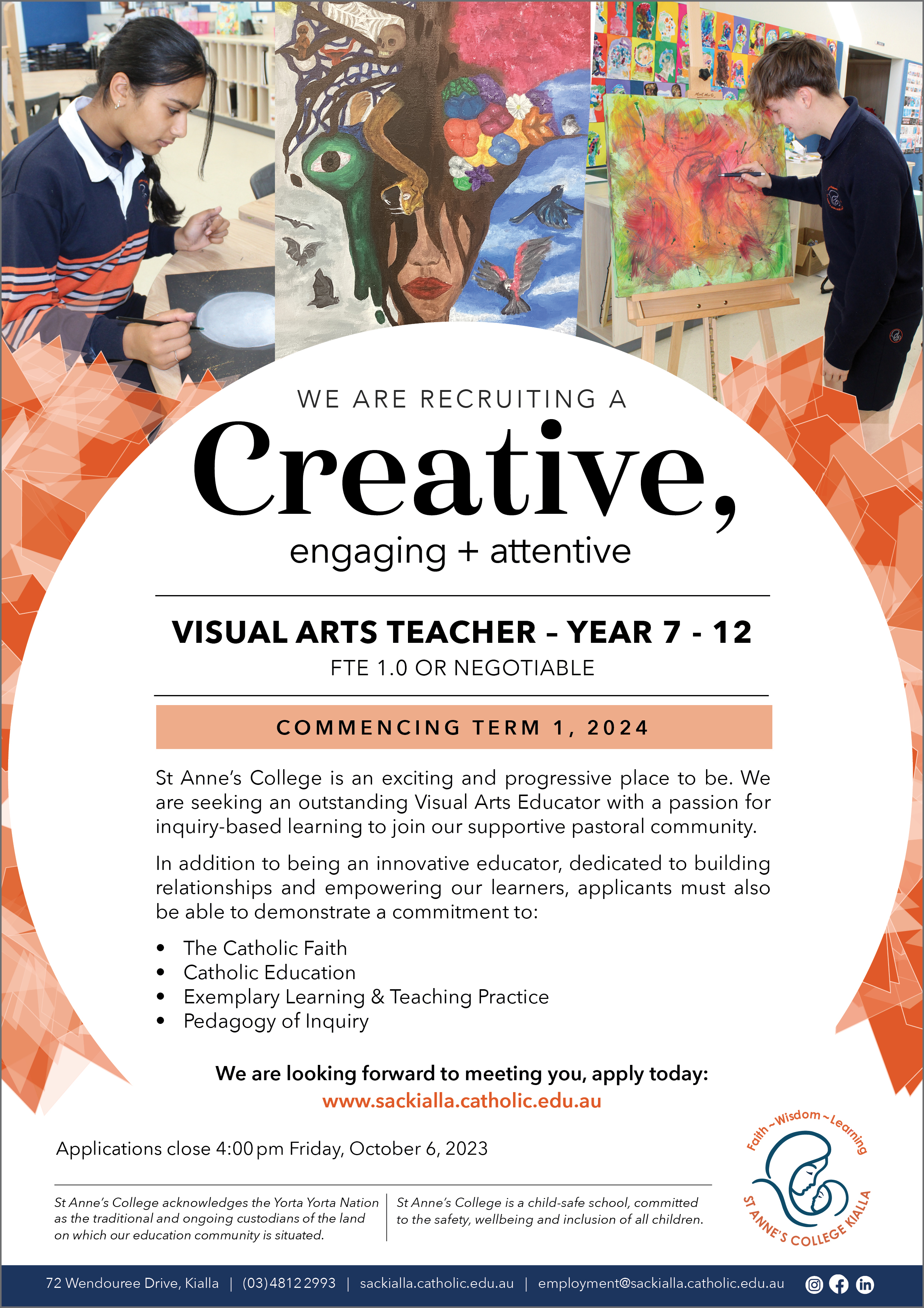 default St Anne s College Visual Arts Specialist Teacher Position 2024 (circulation) ( jpg, 3.18 MB )