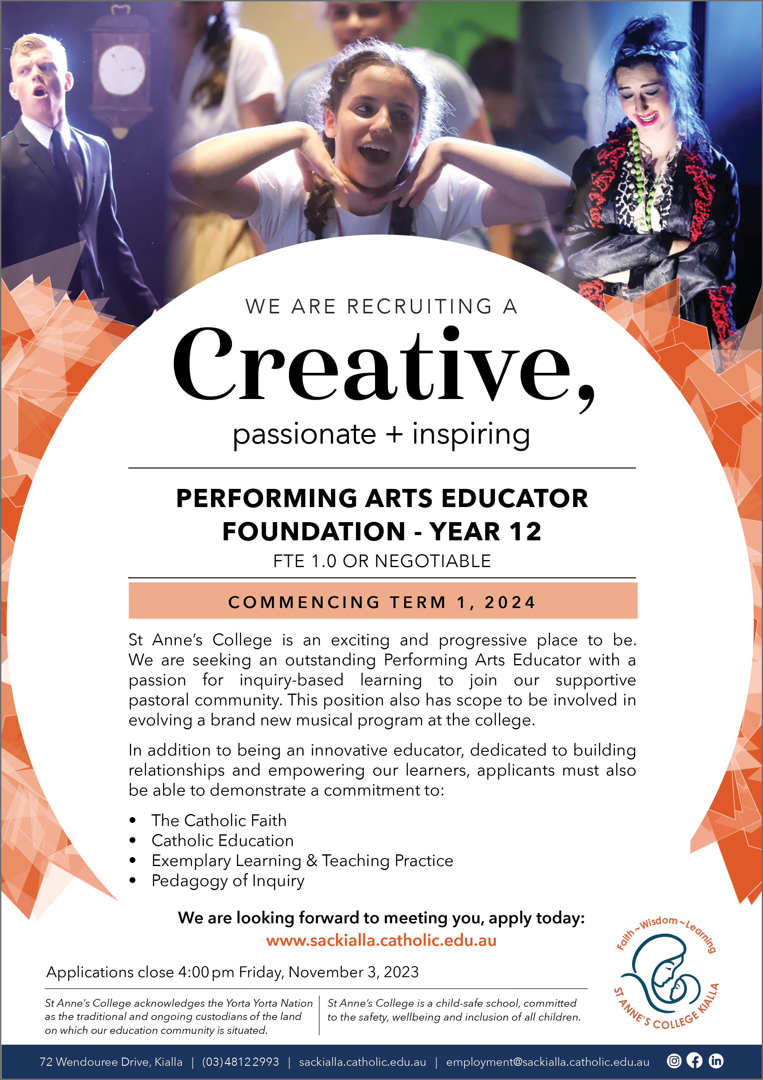 default St Anne s College Performing Arts Specialist Teacher Position 2024 Job Advert (circulation) ( jpg, 2.62 MB )