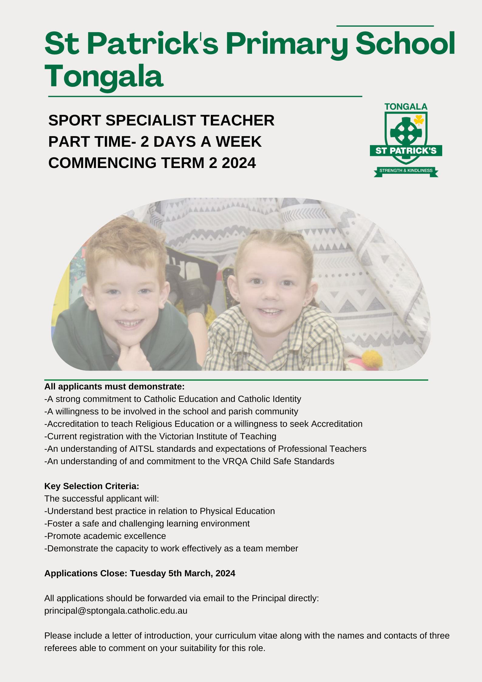 Image ADVERT TONGALA St Patrick's Sport Specialist Teacher (190224) ( png, 1.02 MB )