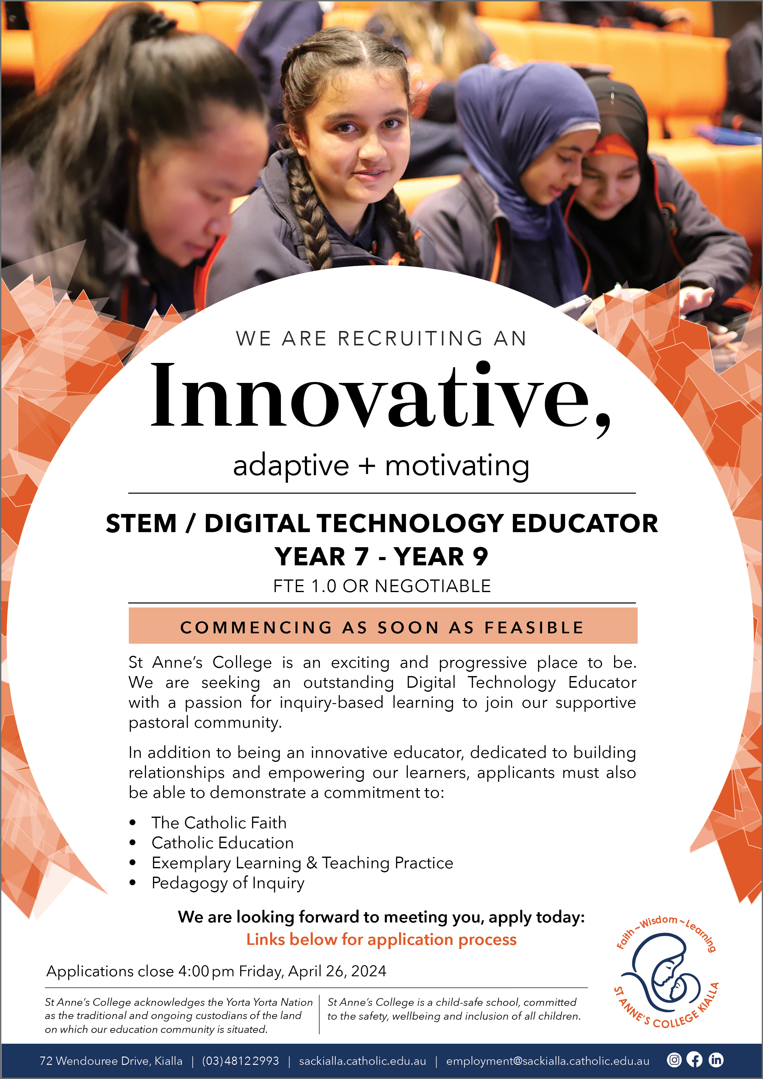 Image St Anne s College STEM Digital Technology Teacher Position May 2024 Job Advert (circulation) ( jpg, 2.88 MB )