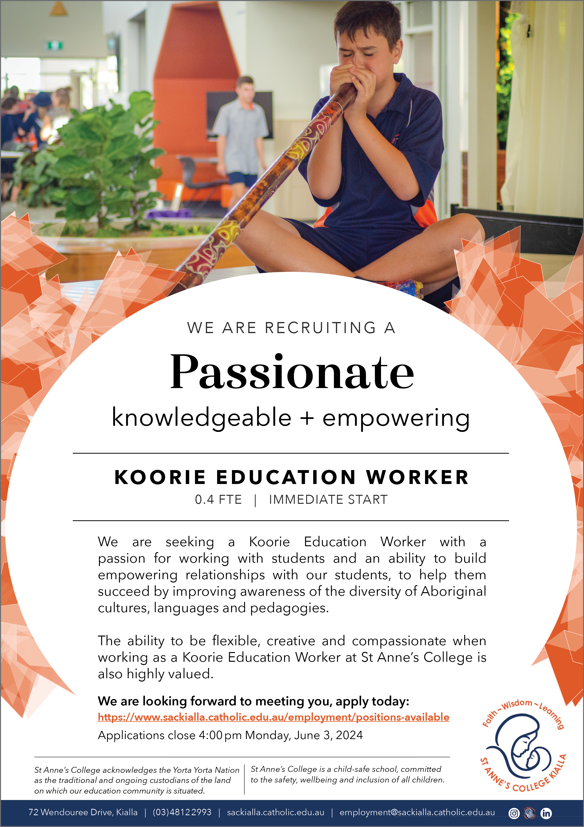 Image St Anne s College Koorie Education Worker May 2024 (For Circulation) ( jpg, 3.65 MB )